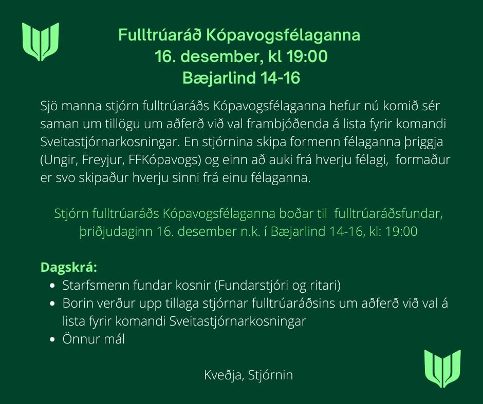 Um er að ræða fjarfund – hlekkur á fundinn verður aðgengilegur á miðlum Ung Framsókn NA.