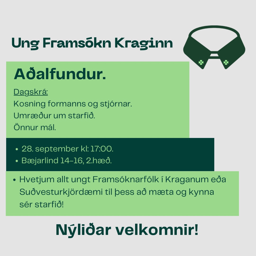 Stjórn Framsóknarfélags Ísafjarðarbæjar boðar til aðalfundar félagsins fimmtudaginn 25. september á skrifstofu Háafells við Hafnarstræti 9, Ísafirði, kl. 20:00.