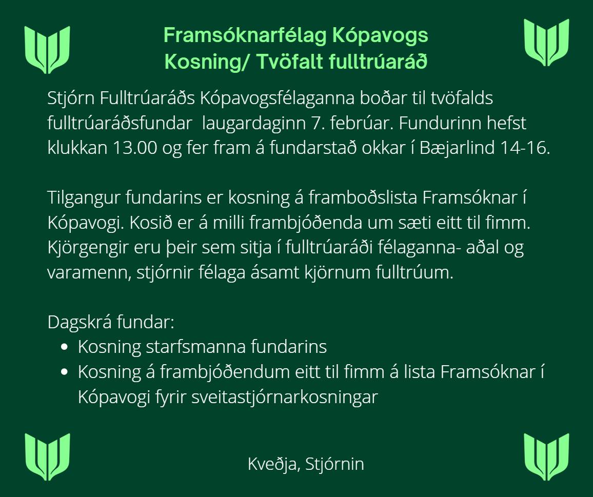 Tvöfaldur fulltrúaráðsfundur í Kópavogi – kosning í sæti 1.-5.