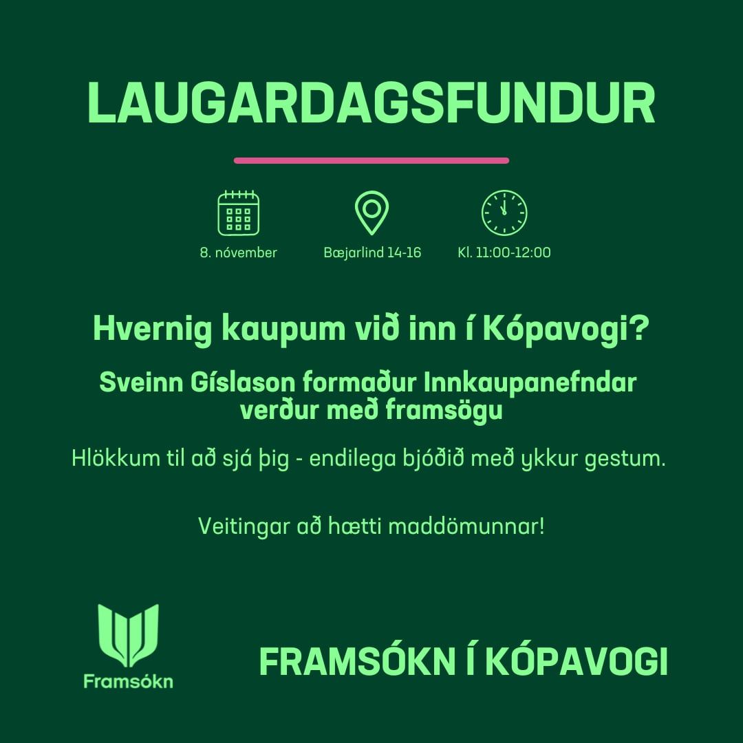 Verið velkomin til okkar á laugardagsfund Framsóknar í Kópavogi laugardaginn 8. nóvember kl. 11:00.