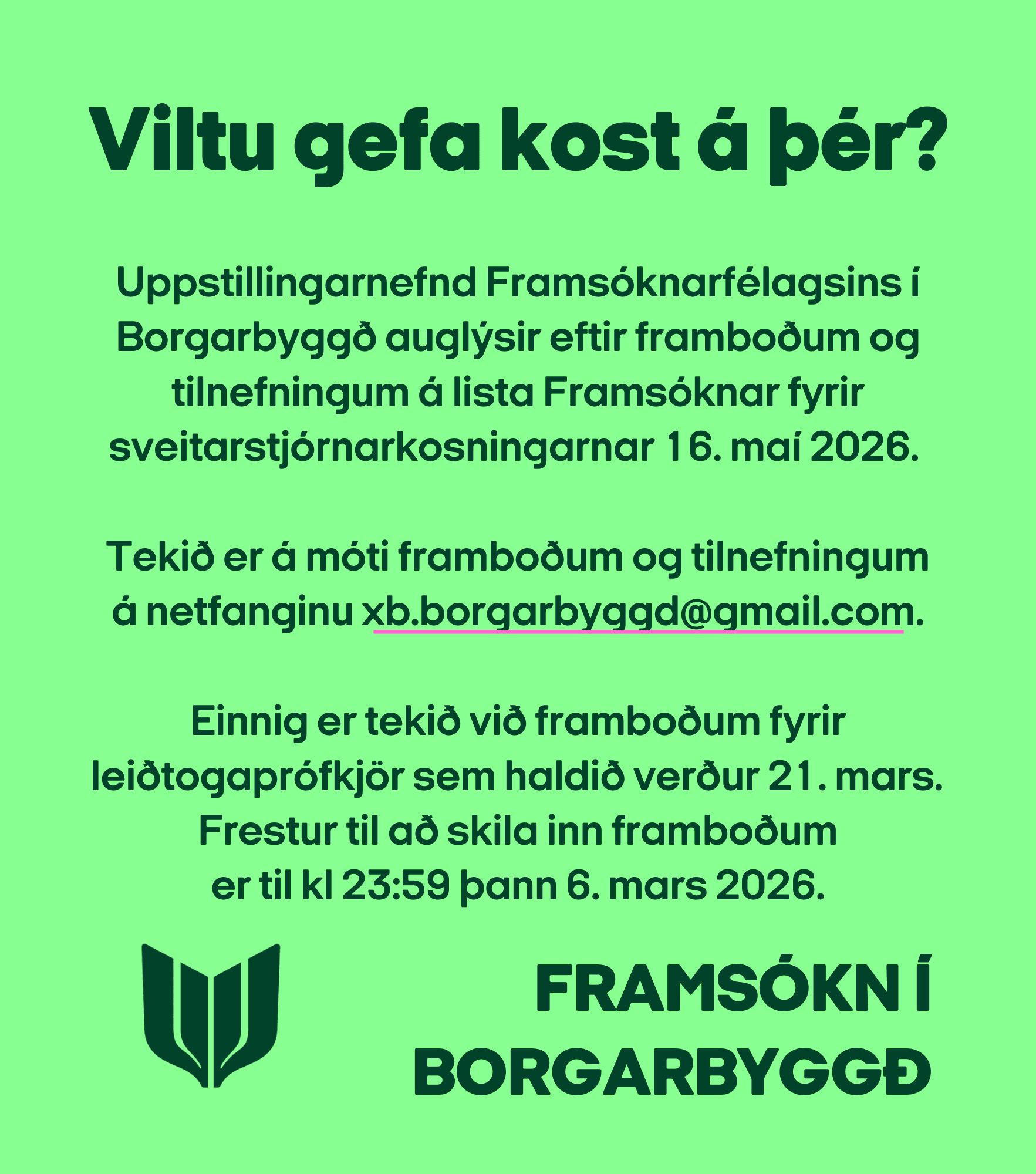 Tekið er á móti framboðum og tilnefningum á netfanginu xb.borgarbyggd@gmail.com.