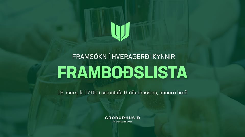 Listi Framsóknar í Hveragerði verður kynntur fimmtudaginn 19. mars á setustofu Gróðurhússins annarri hæð kl. 17:00. Framboðslistinn verður þar borinn undir félaga til samþykktar.