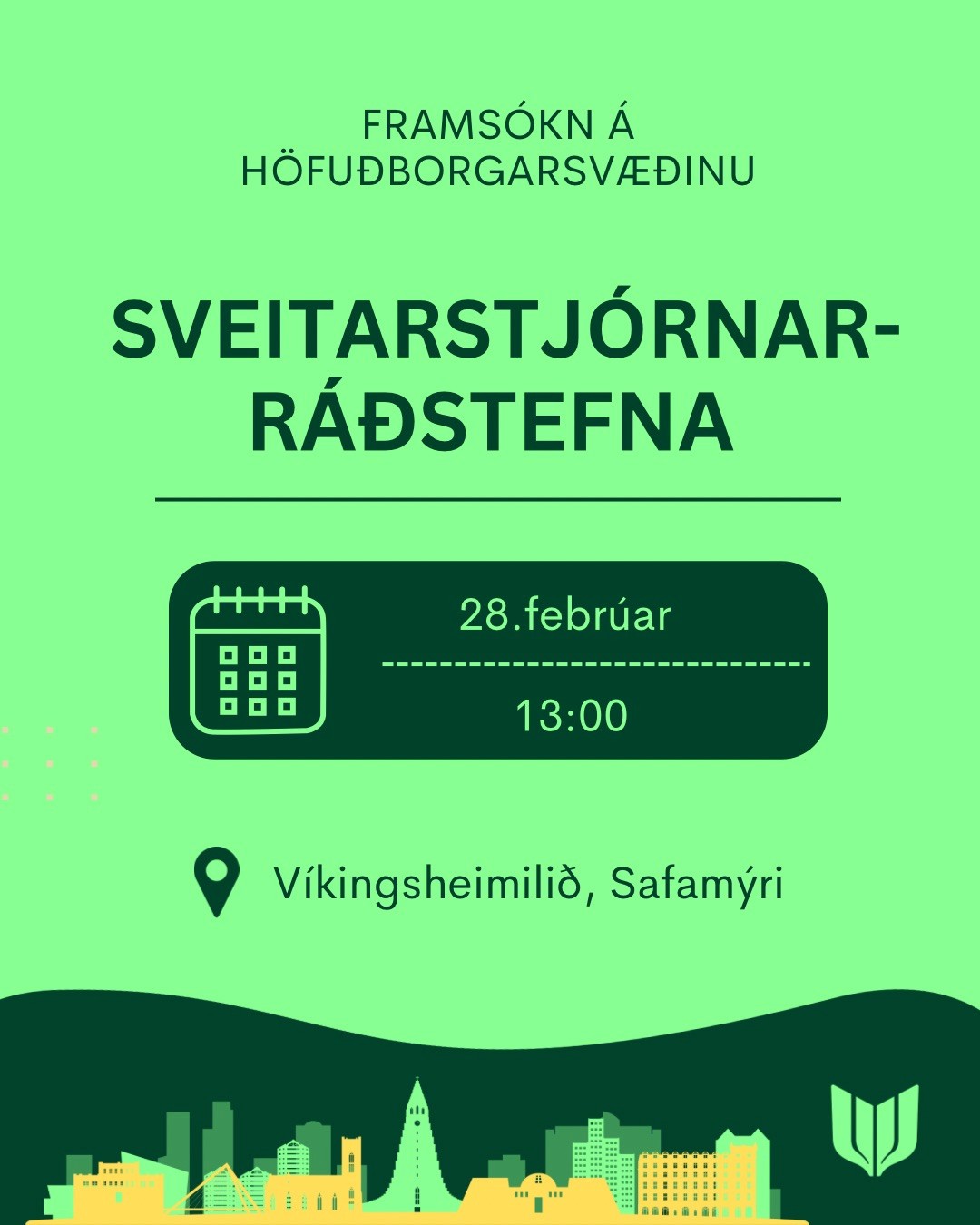 Víkingsheimilinu, Safamýri Laugardaginn 28. febrúar 13:00 Málefnastarf fyrir komandi sveitarstjórnarkosningar. Opið fyrir allt framsóknarfólk. Nánari dagskrá kemur síðar.